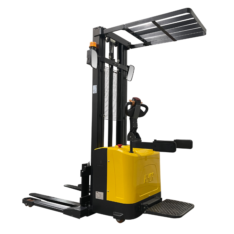 1500 Kgs / 3.5 metros. Apilador RHER Full Eléctrico Hombre a Bordo Base Ancha. Seguridad Europea con Baliza